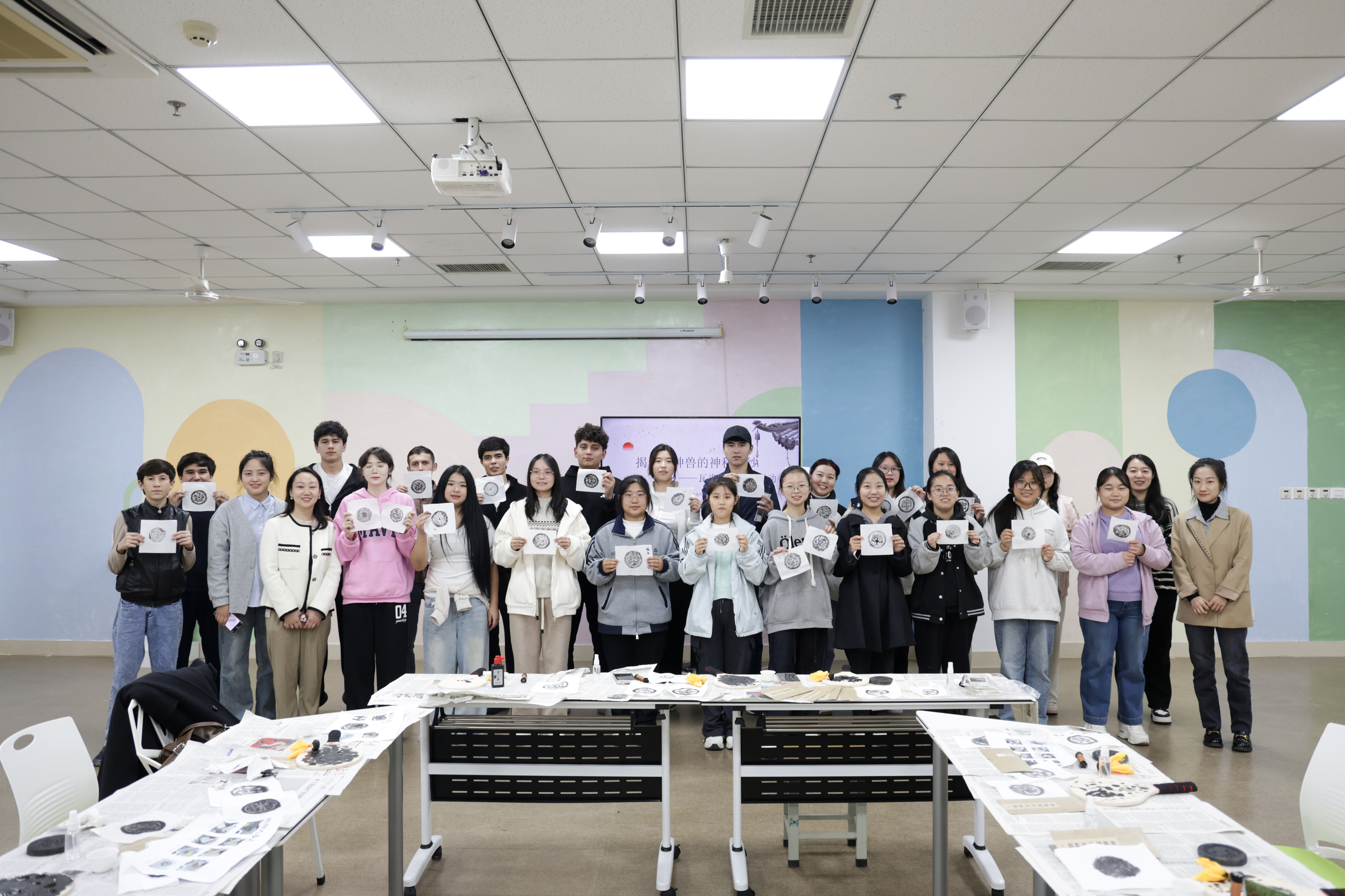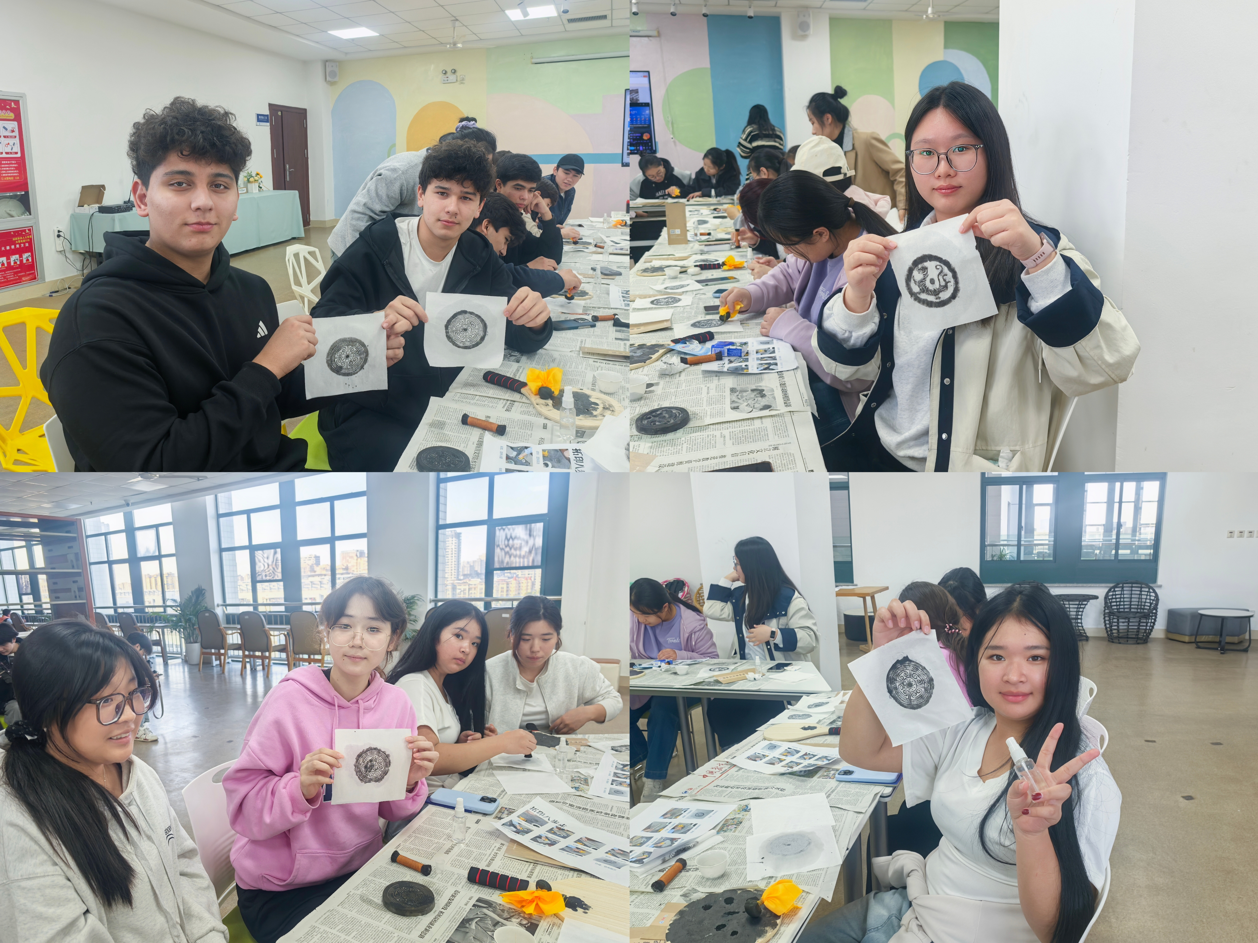拓印过程中,大家互相交流拓印技巧,分享自己的作品。来自塔吉克斯坦的米多福同学兴奋地说:“这次瓦当拓印体验活动不仅让我亲手触摸到了历史的痕迹,更激发了我们对中国古代文化的浓厚兴趣,希望未来能有更多这样的机会,让我们可以更加深入探索中华文明的博大精深。”