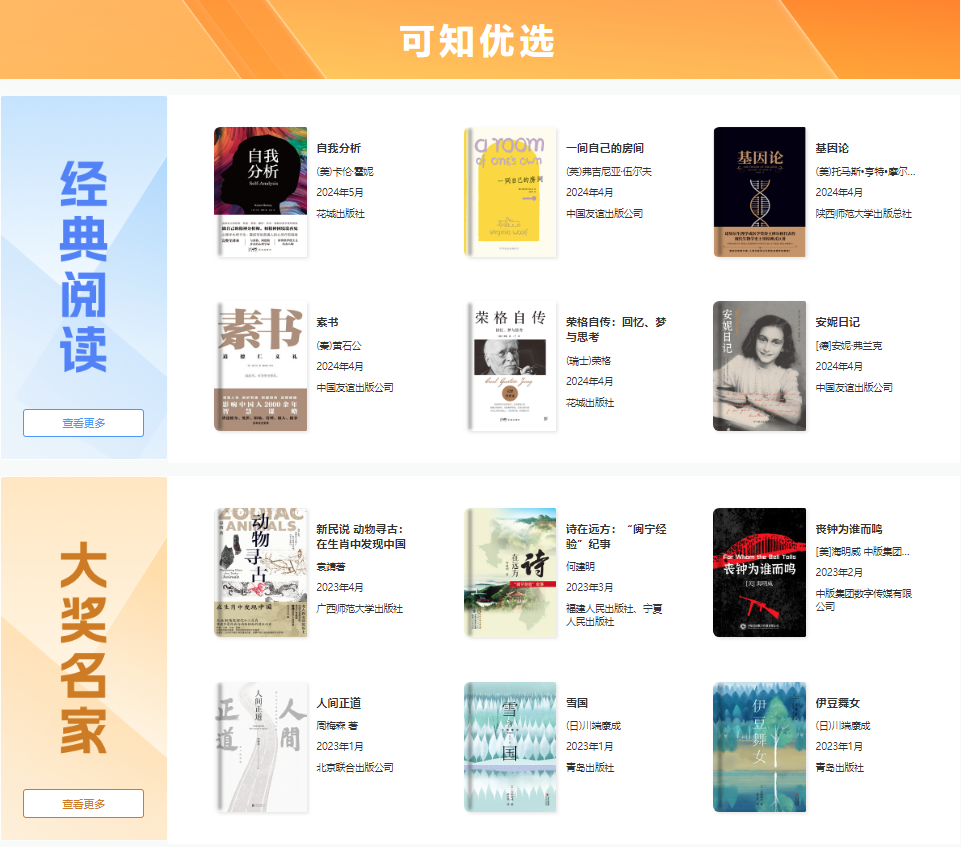 可知平台精选350多家优质出版社入驻,同步上线35多万种精品专业电子图书,覆盖教育部公布的本科及研究生教育的14大门类、职业教育19个专业大类的内容。可知平台支持PC Web端、手机移动端、手持阅读终端以及大屏端等完整的跨平台跨终端融合阅读,提供全文检索、知识阅读、AI辅助阅读、智能推送、知识问答等功能,颠覆了传统阅读模式,促进知识发现和知识获取,为科研和教学提供精准知识内容服务。